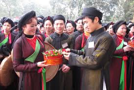 Characteristics: Water puppetry show, boi chess (wood chess), cock fighting, smash pots (rice husk, and water in the pot), quan ho singing contest.